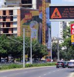 Електронно табло предупреждава за тапи и затворени за ремонт улици в София. То се намира на кръстовището на булевардите България и Тодор...