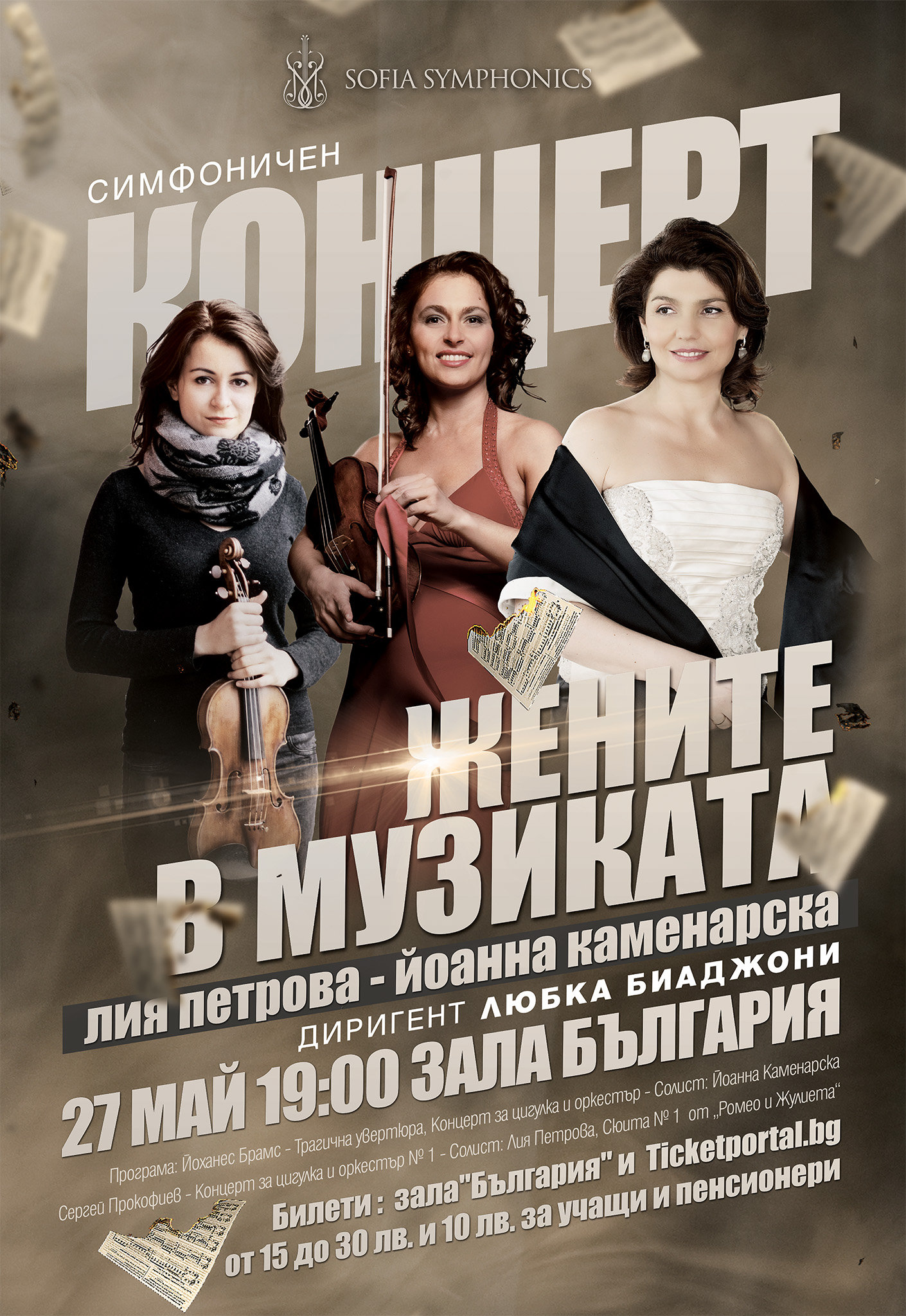 Три прекрасни, женствени и темпераментни дами – Маестра Любка Биаджони, Йоанна Каменарска и Лия Петрова, заедно с музикантите от София Симфоникс ще представят за първи път у нас симфоничният концерт Жените в музиката. Представлението им ще бъде на 27 май от 19:00 часа в зала България.
