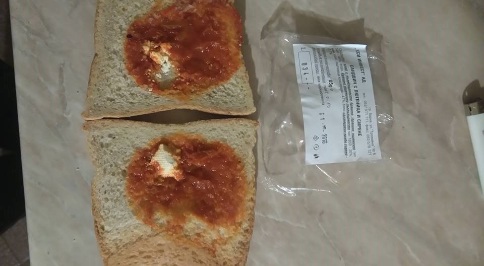 Възмутени родители споделиха във фейсбук снимка на това, с което хранят безплатно децата им в училище – сандвич с лютеница и сирене. Звучи апетитно, но след като го видите (на стр.16), ентусиазмът Ви със сигурност ще секне. Така нареченият сандвич е жива подигравка - количеството лютеница е не повече от чаена лъжица, а бучката сирене най-вероятно се е озовала в сандвича по погрешка.