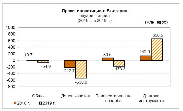 „От началото на 2019г. повече преки инвестиции са изтекли от България, отколкото са се влели. Голямото изтичане е при дяловия капитал и малко при реинвестираната печалба.